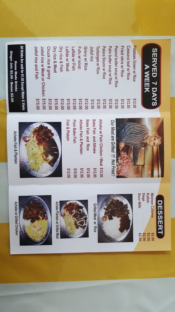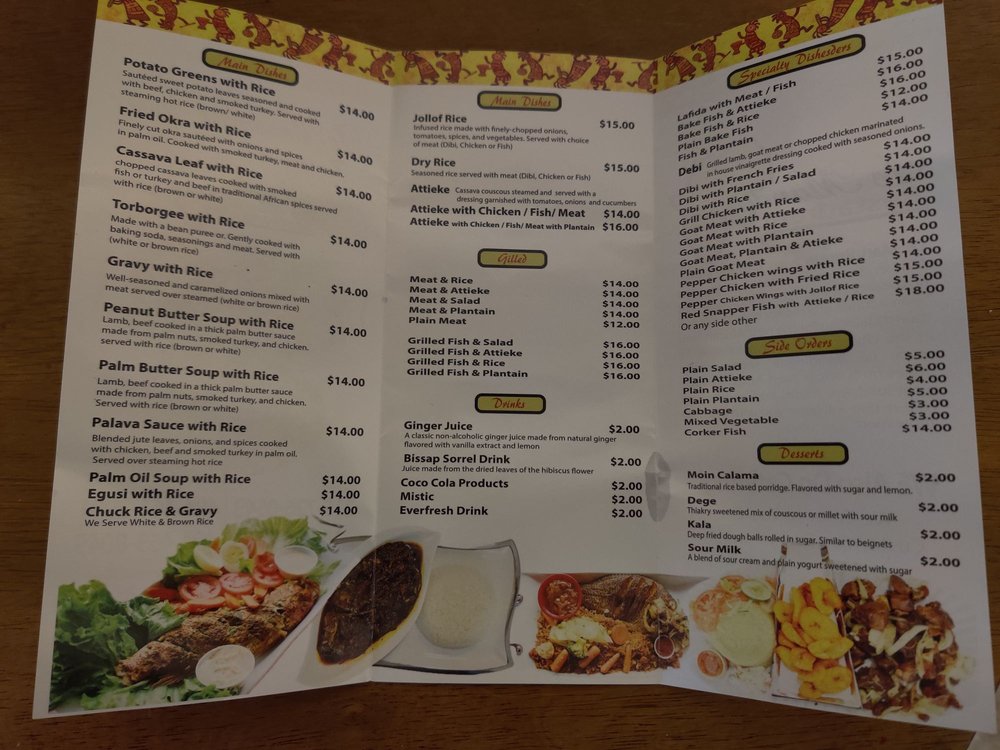Le Mandingue African Restaurant Menu